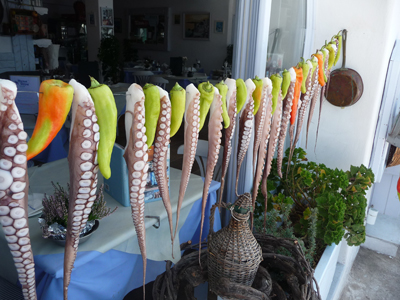 We decided to walk to Mama Thira for a dinner of delicious barbequed octopus, Santorini salad, local wine and raki. |