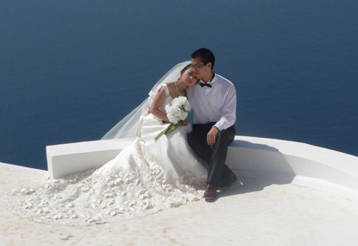Did a load of laundry in our quaint little laundry-room in our “cave house” and then sat out on the terrace as the sun sank into the Aegean to the west. Nearby a wedding was taking place. |